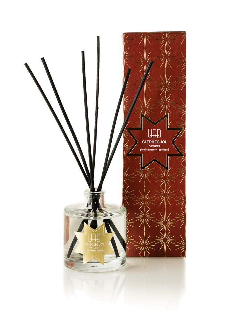 Jólailmurinn frá URÐ fangar minningar jólanna með sannkallaðri jólaveislu fyrir lyktarskynið. Ilmurinn samanstendur af blöndu af furu, fíkjuvið, karamellu, santalvið, kanil, davana, sedrusvið, rifsberjum og patsjúlí.