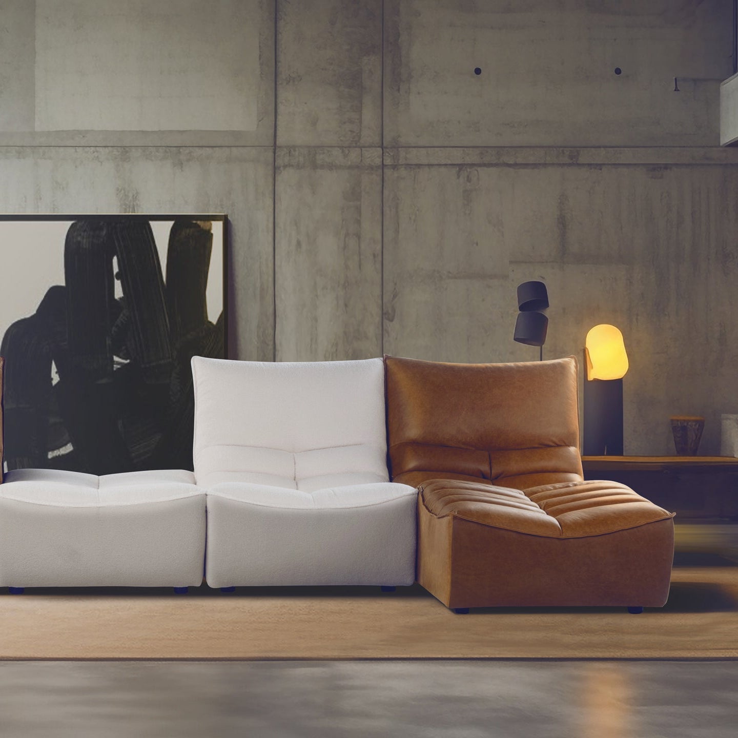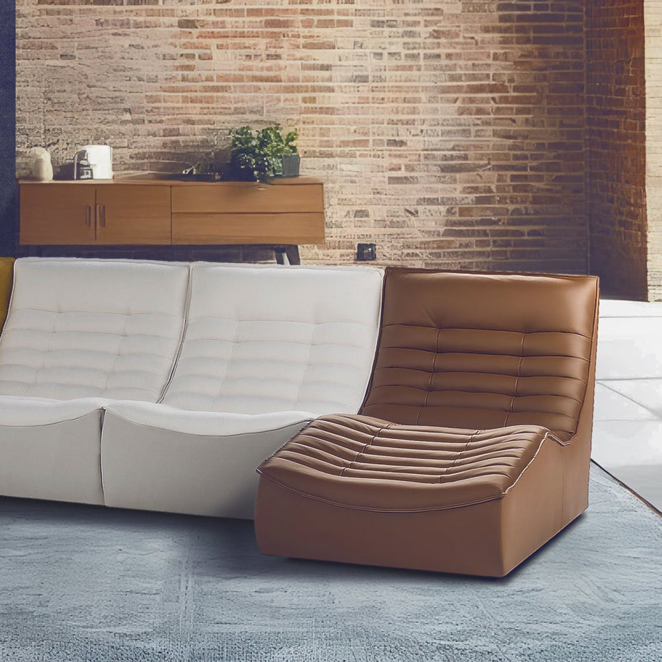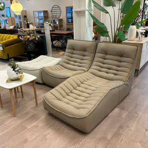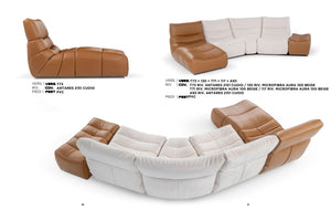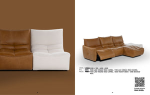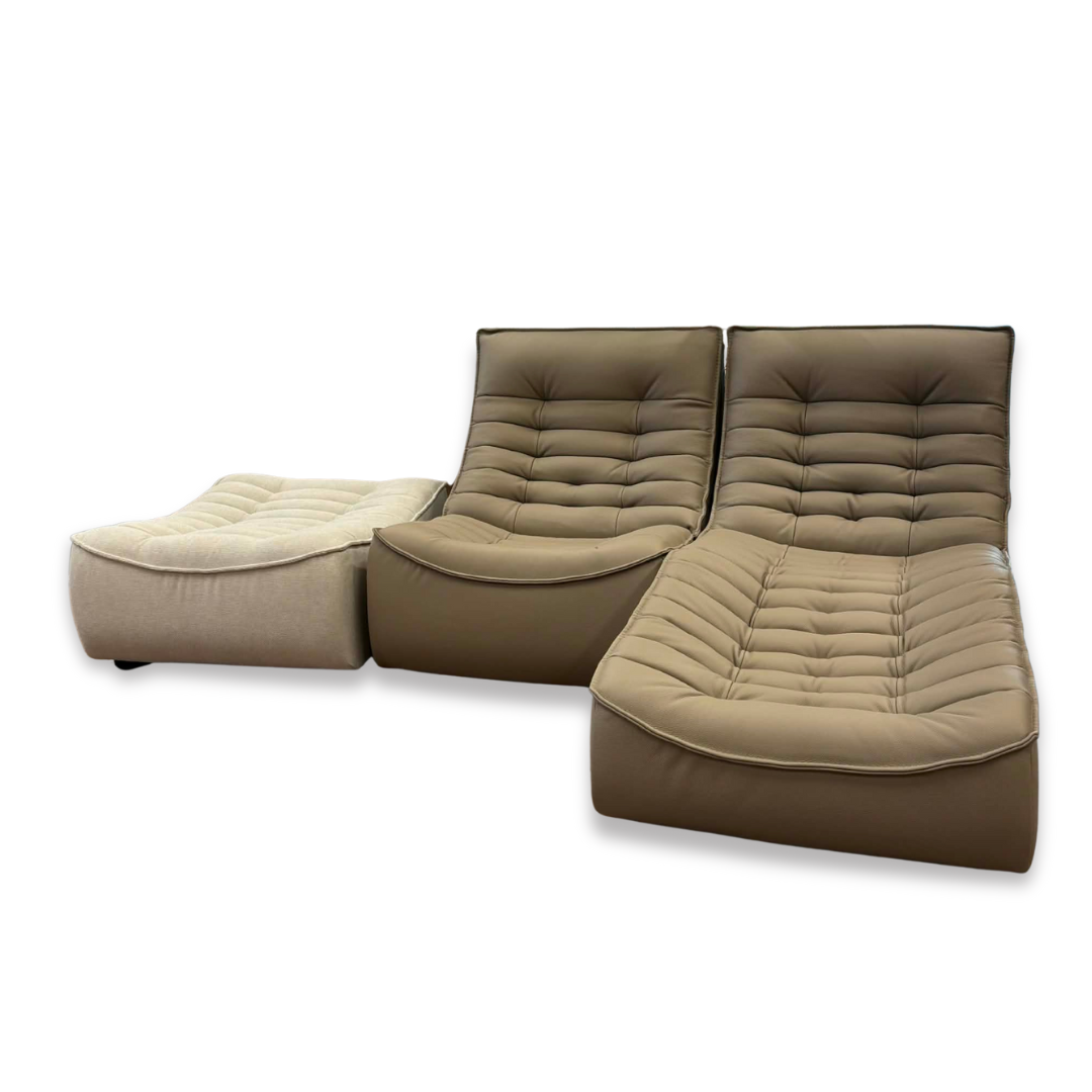 Litur: hægt er að velja milli ótal tegunda af efnum og litum. Raðau saman þínum draumasófa úr þeim einingum sem henta. Verð miðast við 3 einingar. Tvær í leðri og skemill í taui. Stærð: B 243 cm. L á tungu 162 cm.