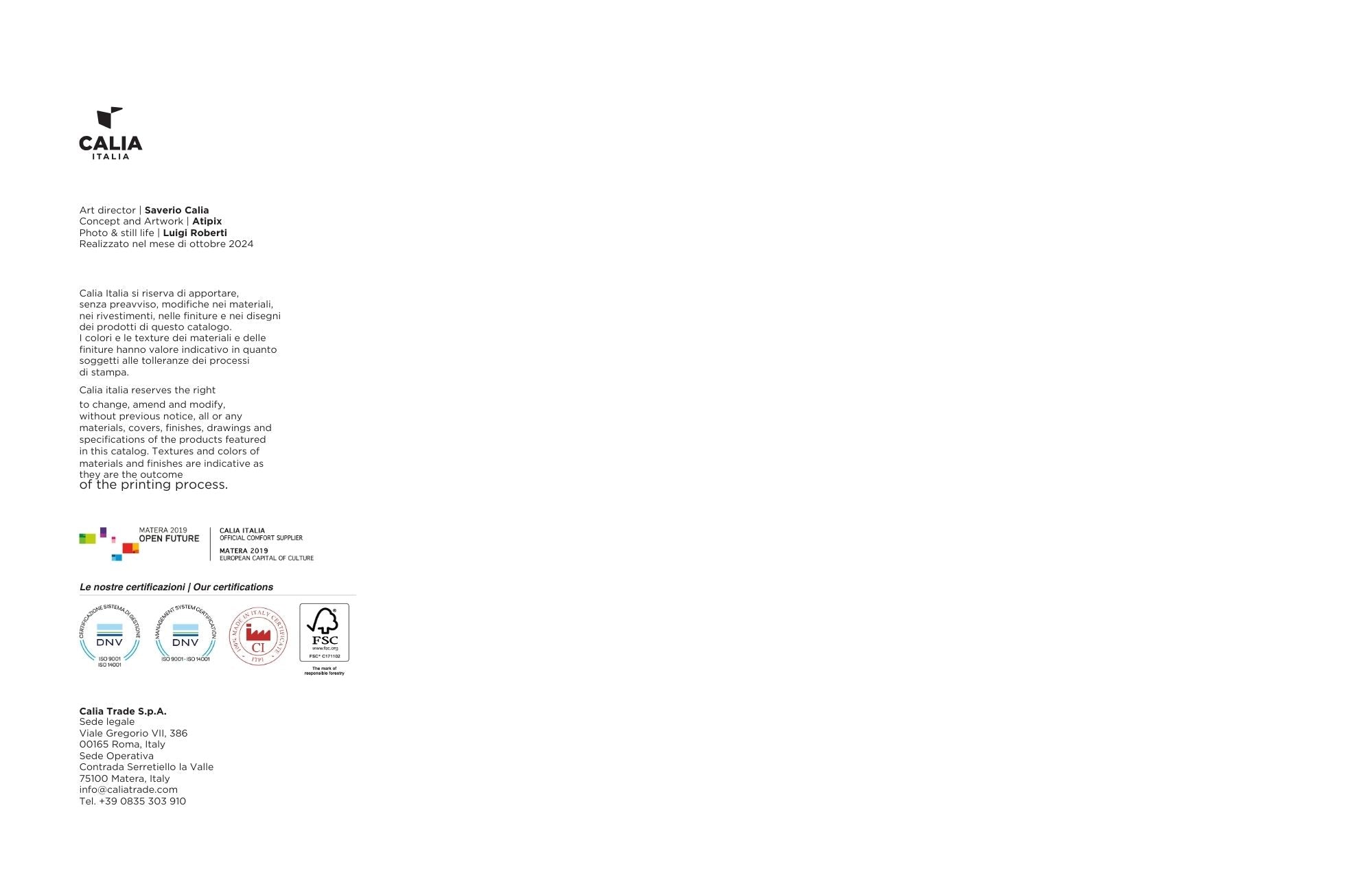 Calia Italia notar eingöngu ekta leður og hágæða textíl í vörur sínar, sem er trygging fyrir gæði og fegurð. Leðrið sem Calia notar er vandlega valið og unnið án þess að skaðlegar vörur séu notaðar, sem þýðir að öll náttúruleg einkenni þeirra haldast og það sama á um textílinn.