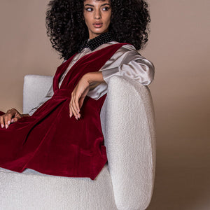 Hægindastóllinn Drusilla með sínum ómótstæðilega 7. áratugar stíl. Með egglaga hönnun, mjóum pinnalaga fótum og nettum hlutföllum er Drusilla ekki bara flottur lounge stóll heldur líka þægilegur hægindastóll með notalegu baki þar sem hægt er að hvíla handleggina á þægilegan hátt – fyrir þá sem kunna að meta stíl án þess að fórna þægindum.