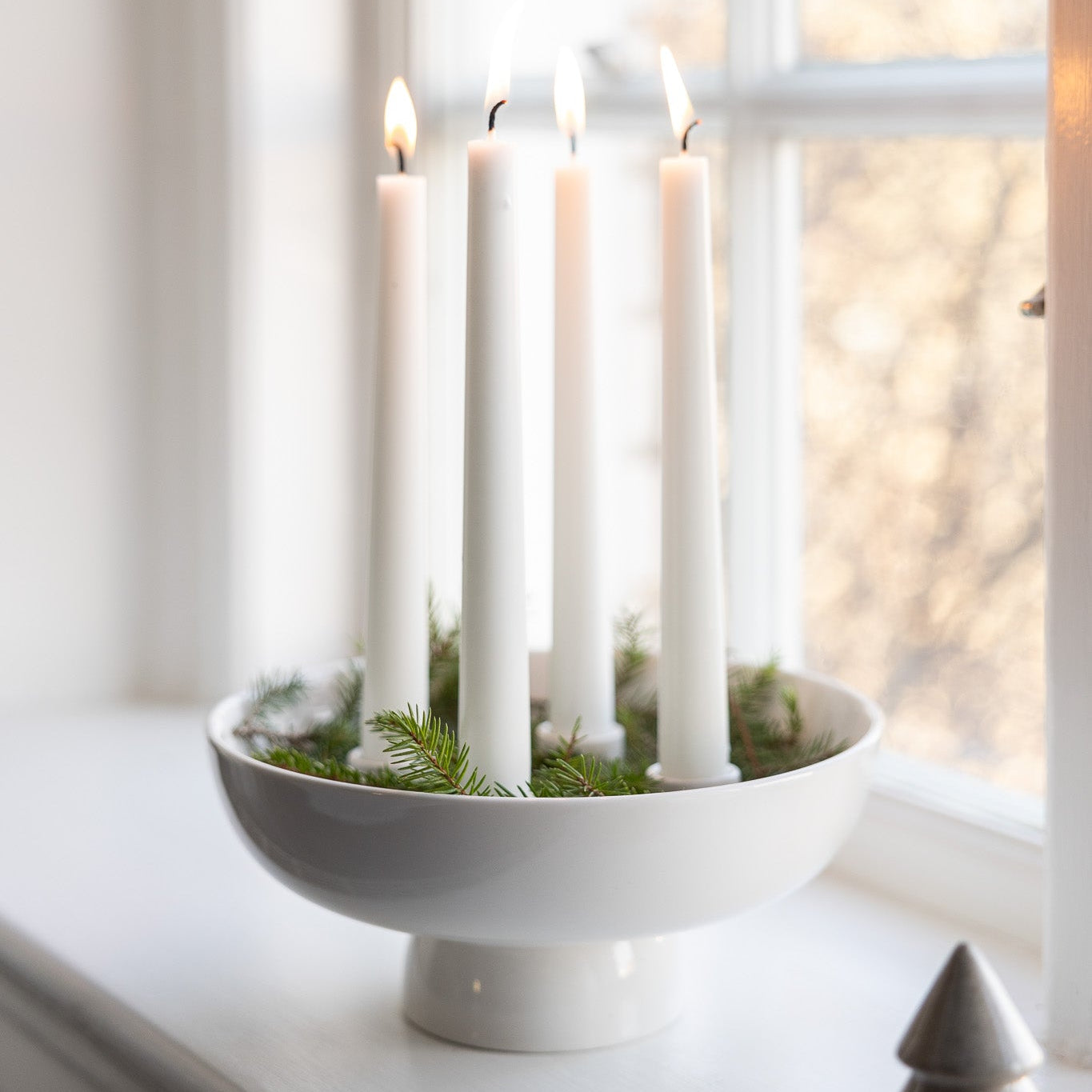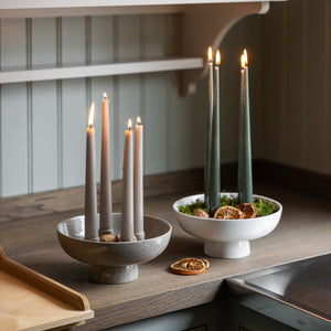 • Aðventustjaki á fæti úr keramik.  skreyttu hann t.d. með könglum, greni og berjum og þú ert klár í aðventuna .