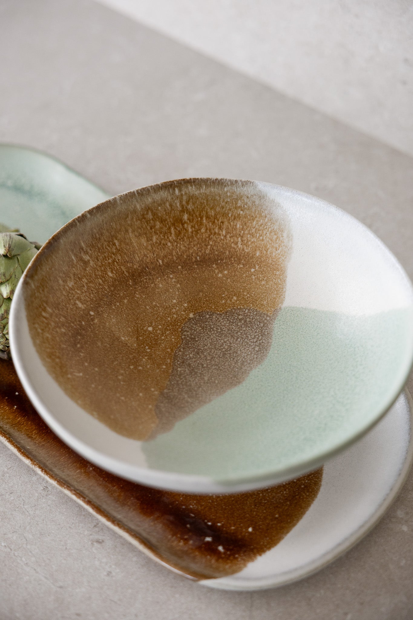 Efni: Ceramic  Litur: grænn7brúnn.  Má fara í uppþvottavél.