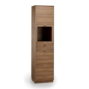 Stærð: 50x44x200 cm. 2 hurðir, 3 hillur, 1 opið rými, ein skúffa og 1 led ljós. Þennan skenk er hægt að fá í nokkrum viðartegundum.
